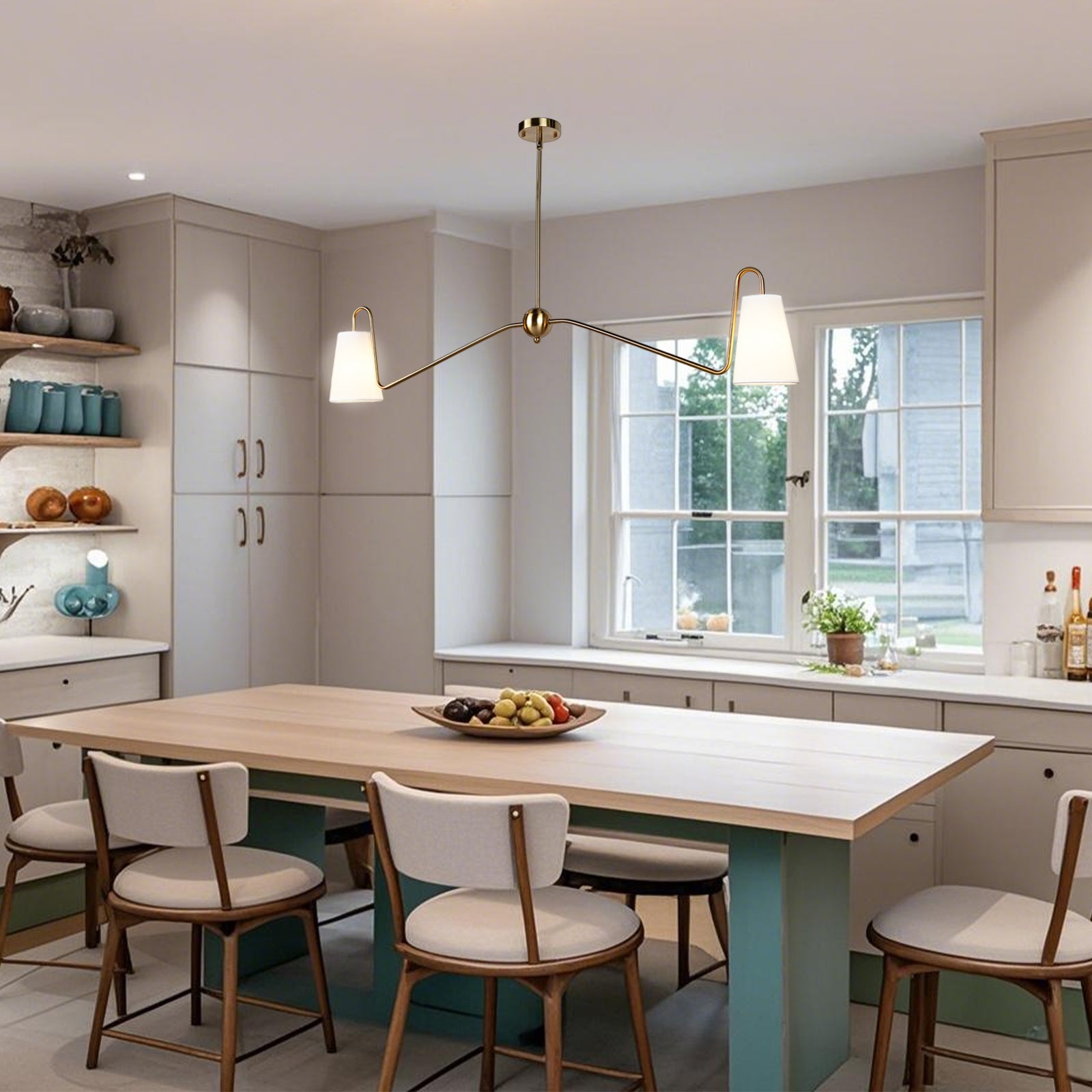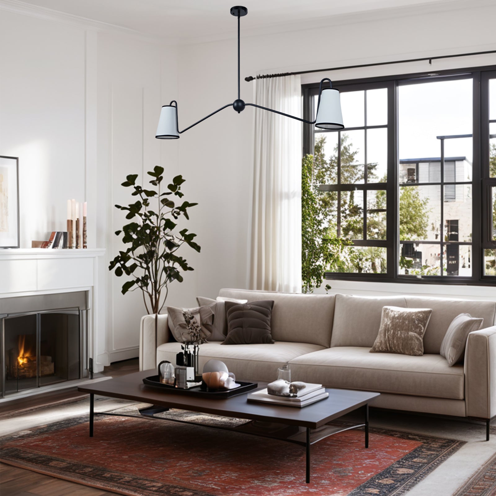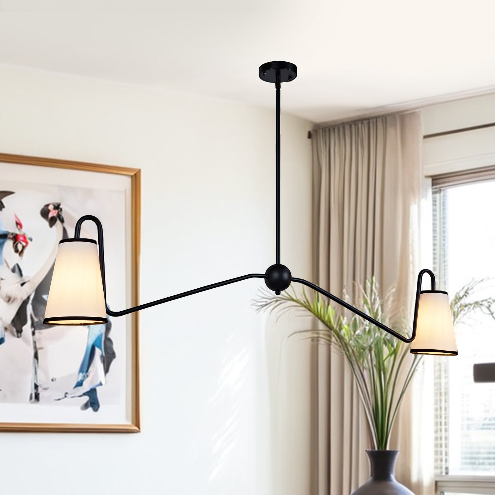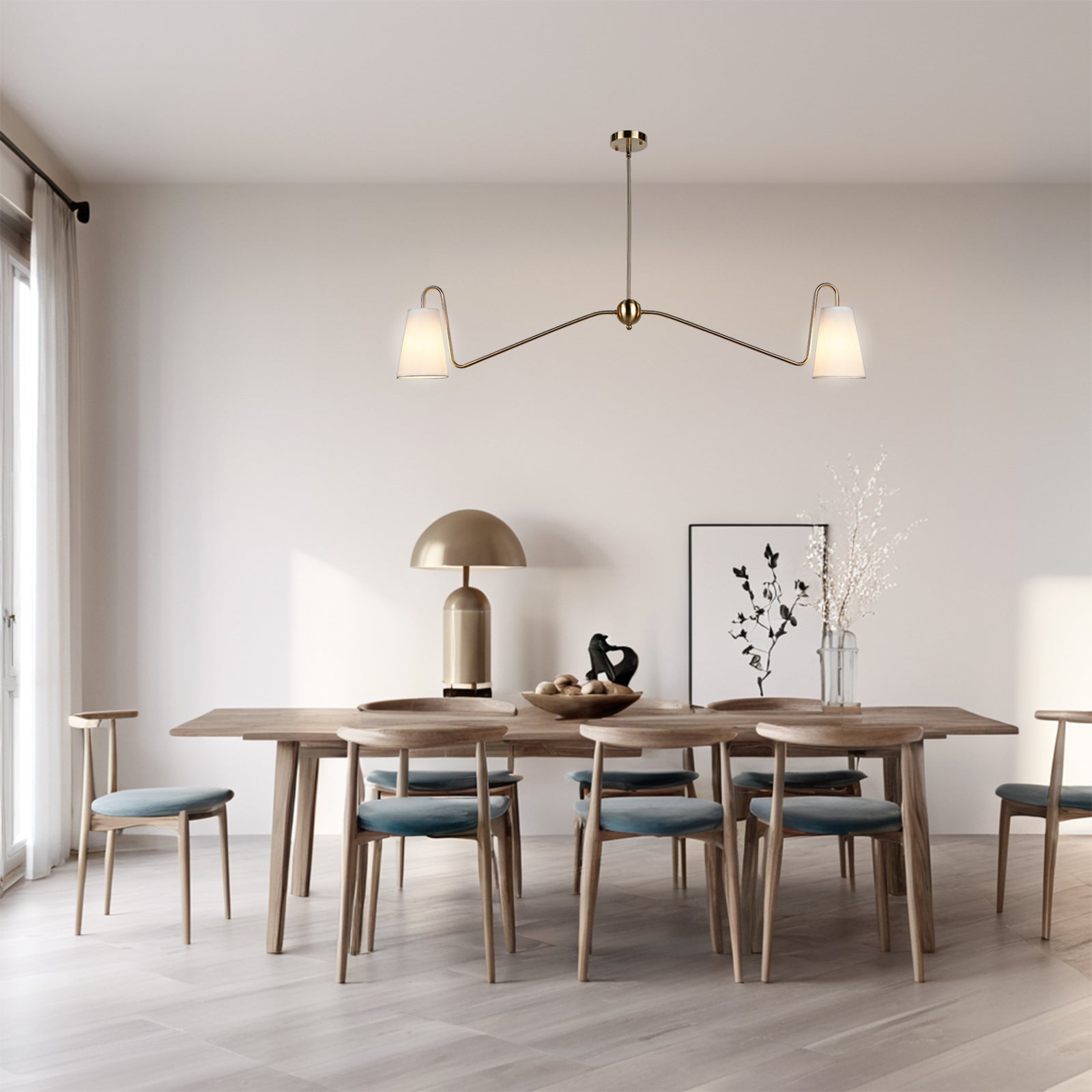 - Introducing our stunning Linen Chandelier, a versatile lighting fixture perfect for your dining room, bedroom, or living room. This chandelier features a modern and angular design with tapered linen shades that add a touch of sophistication to any space.