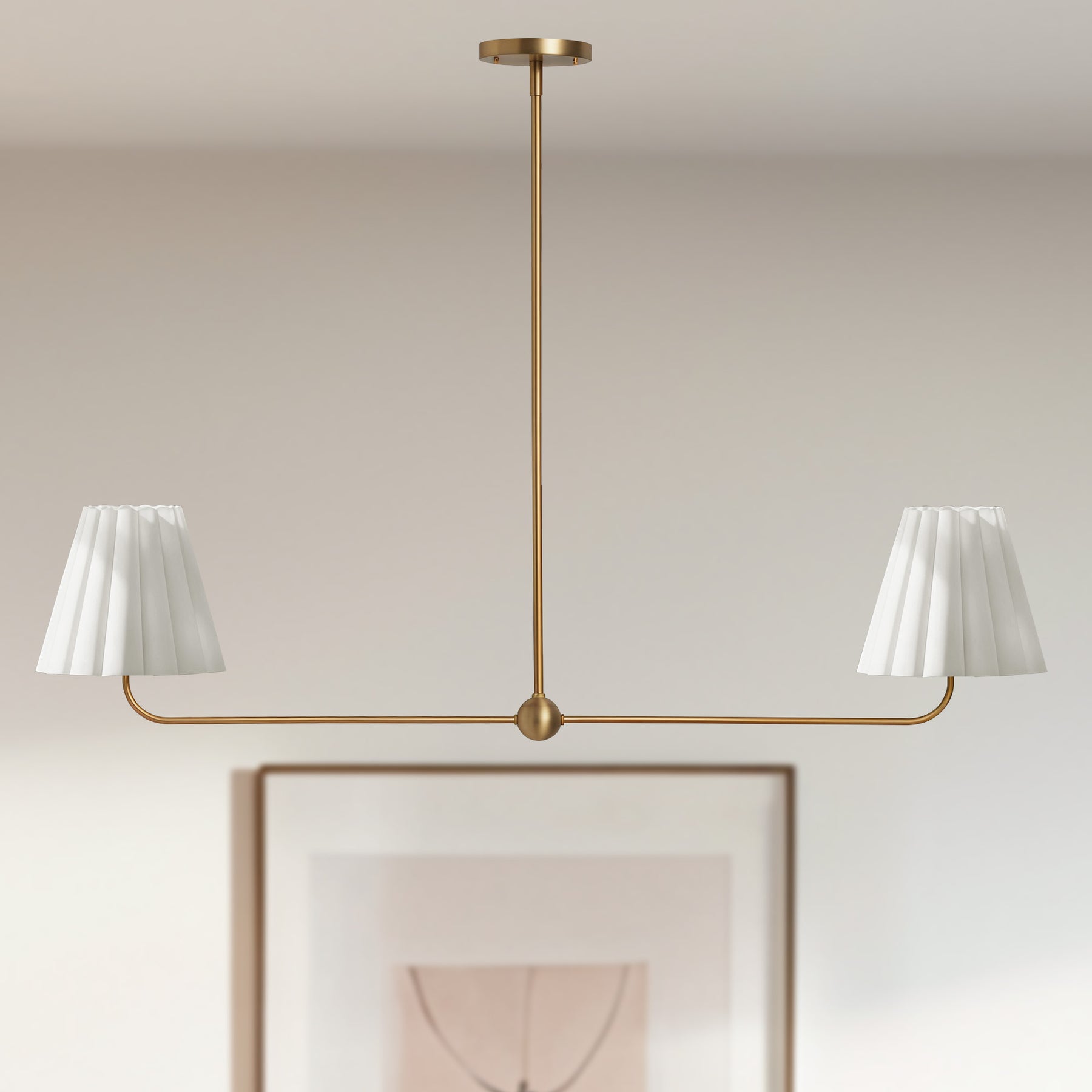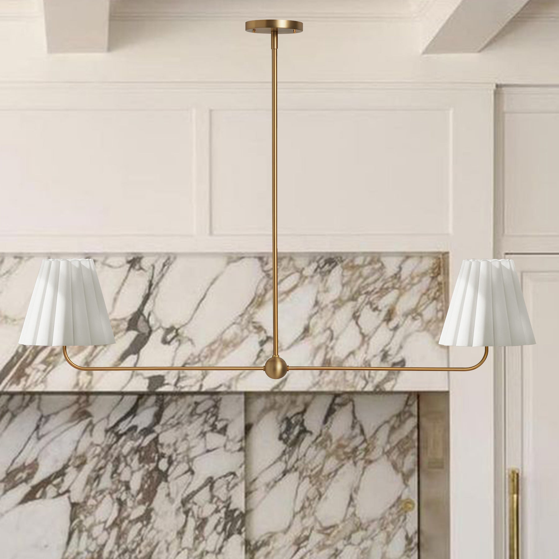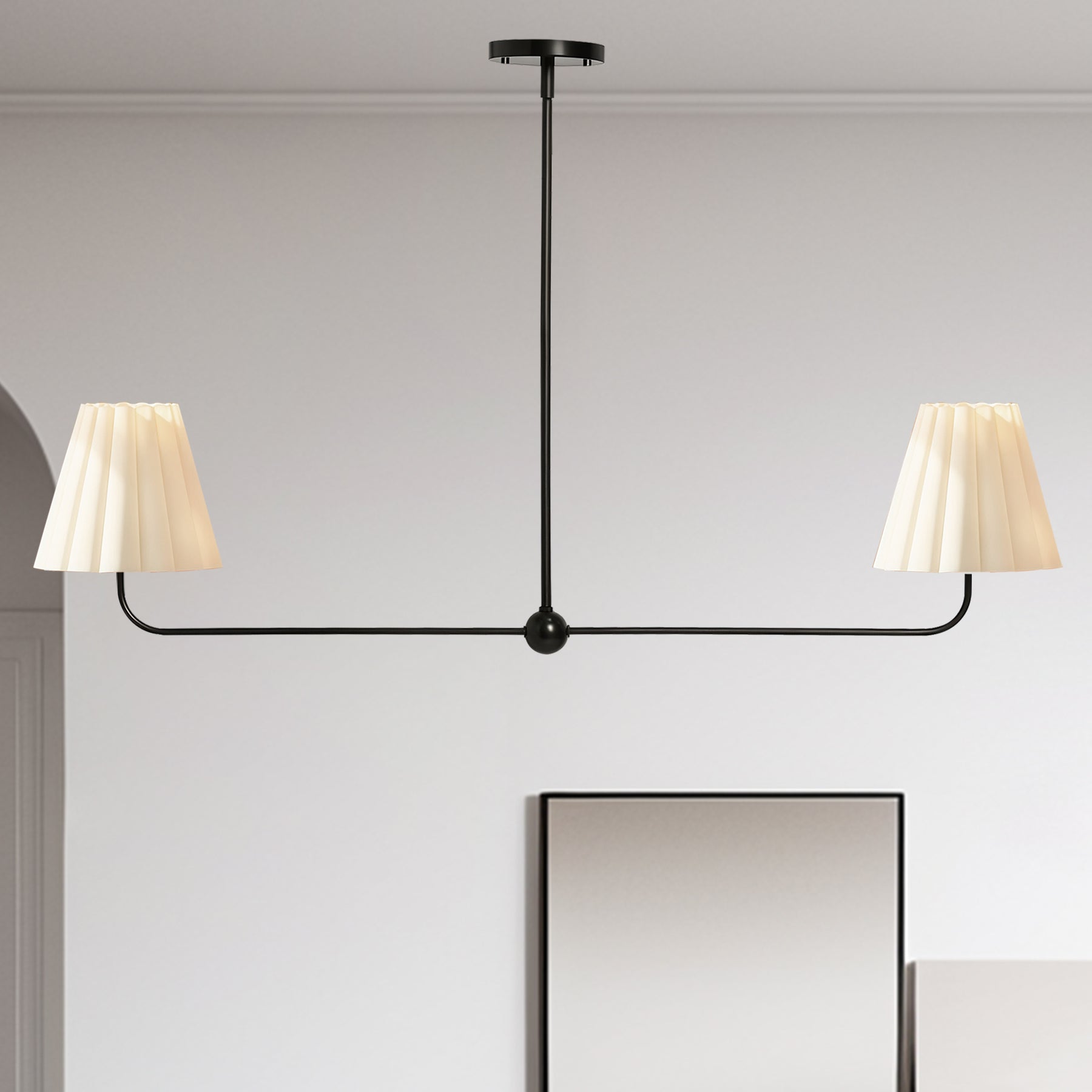 Kitchen Island Lighting with Pleated Linen Shade, 2 Lights Linear Chandelier with Adjustable Height (18-46"), Modern Ceiling Hanging Pendant Light for Dining Room, Living Room, Bedroom