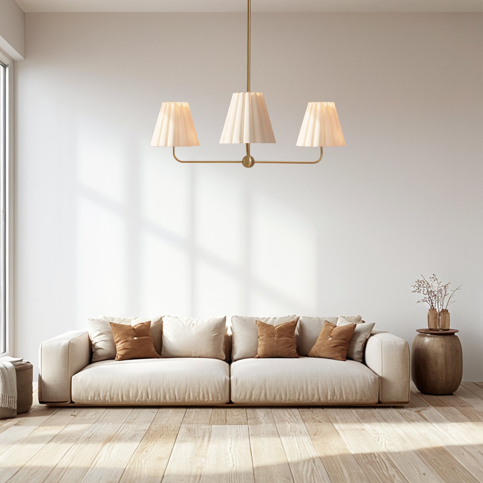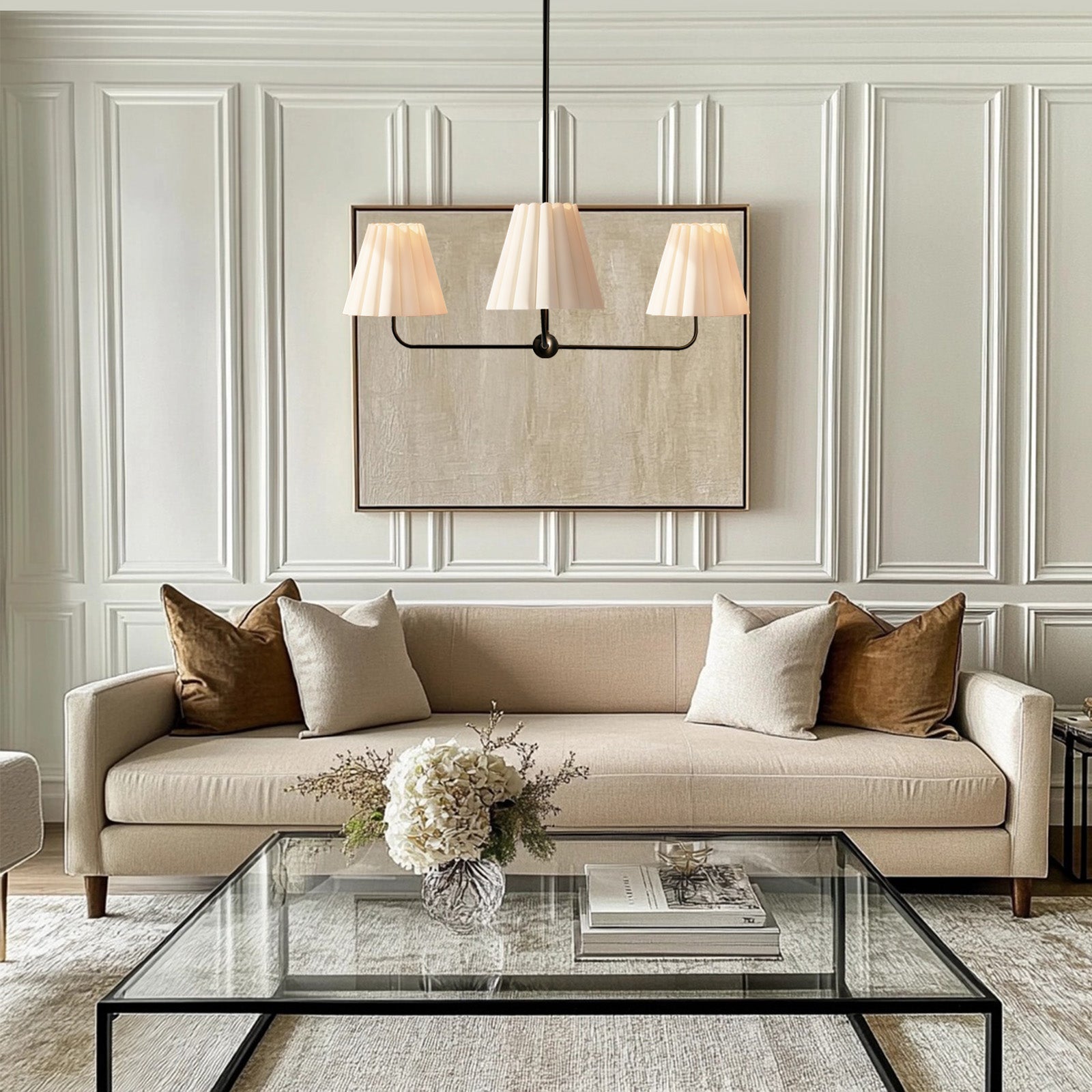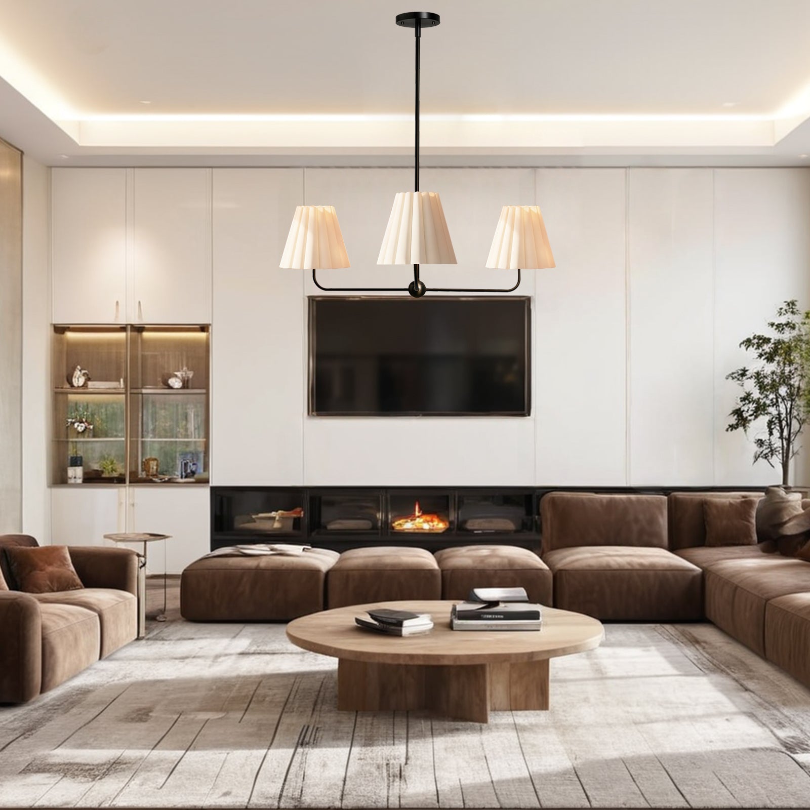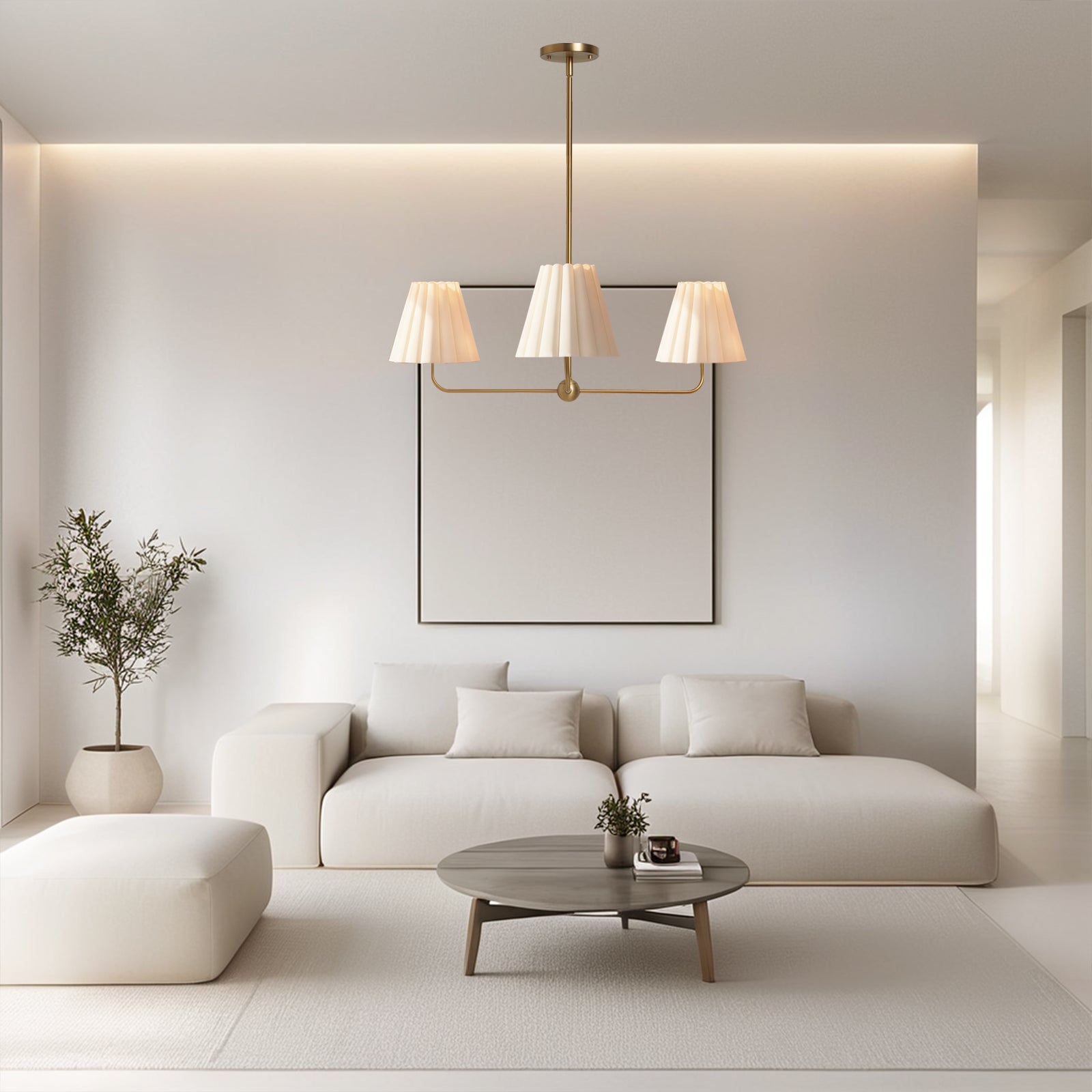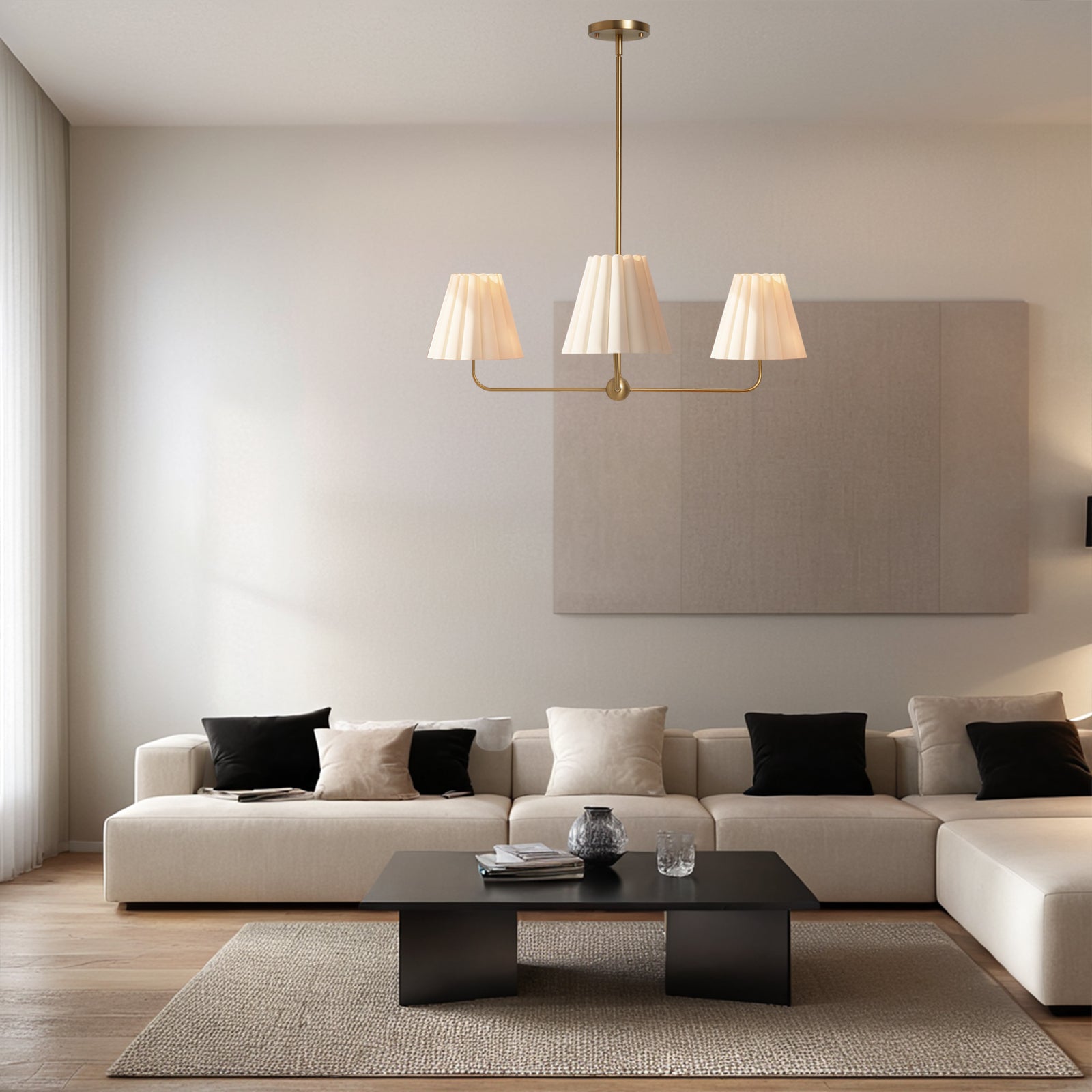 - The cleanly ruffled shades of the Matthews chandelier bring a modern touch to a classic design. The graceful lines and transitional style offer versatility with statement appeal as a living room, dining room, or bedroom chandelier.