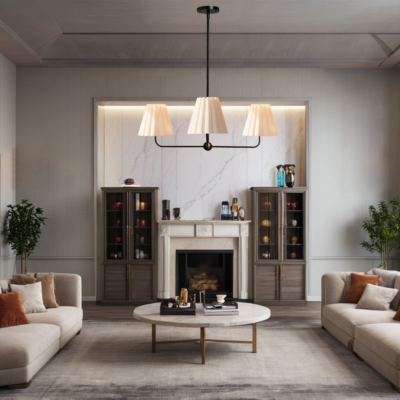- Don't miss out on this contract-grade item that meets commercial standards and is designed for both residential and commercial use. Add a touch of elegance to your space with this Linear Linen Chandelier.