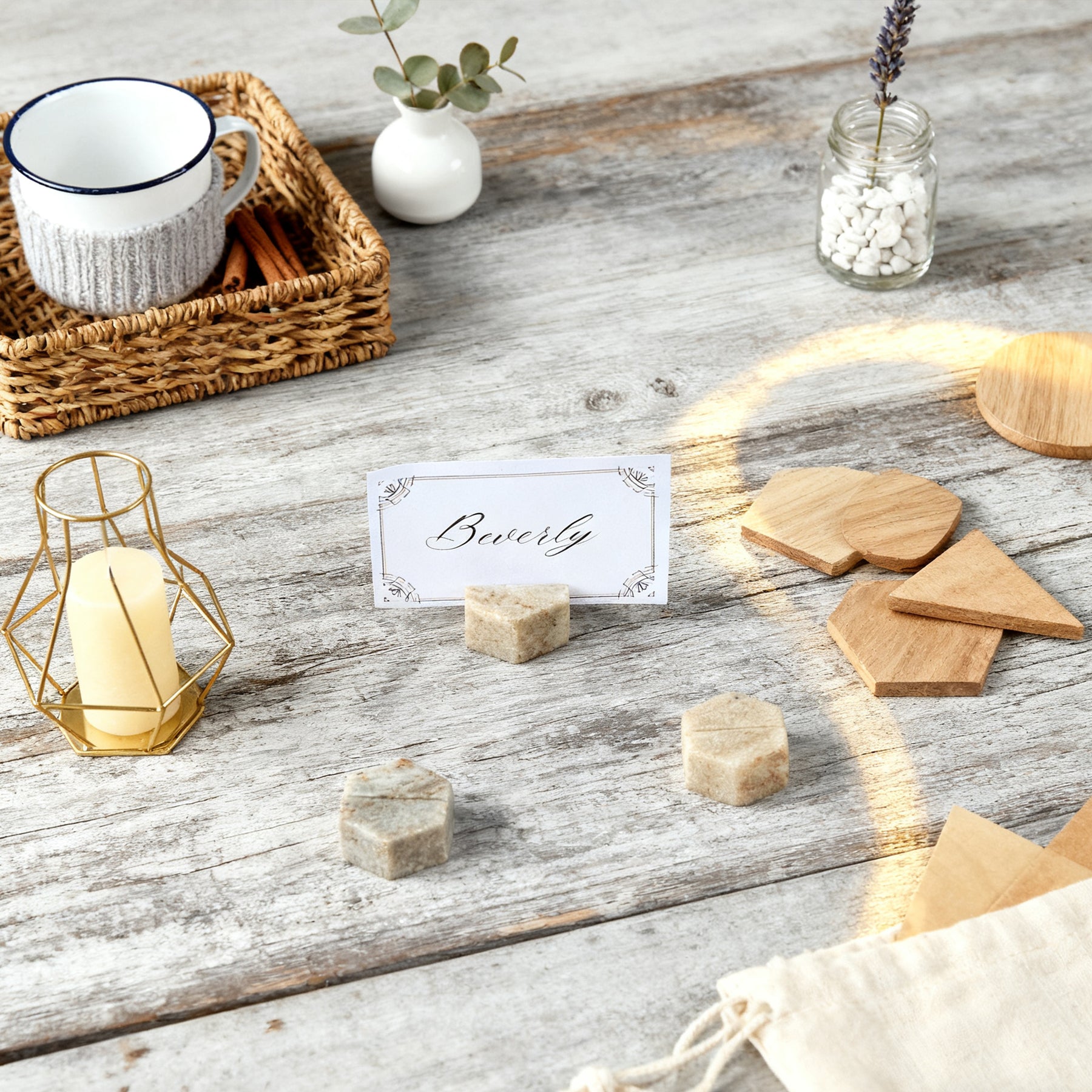 Marble Hexagon Placecard Holders, Set of 4 0.79"H height 1.5"dia.