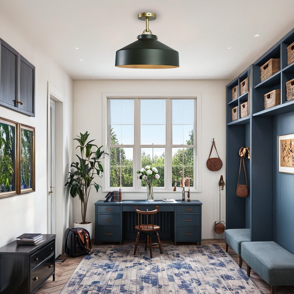 - Featuring subtle angular details, this ceiling lamp is a versatile addition to your home decor.