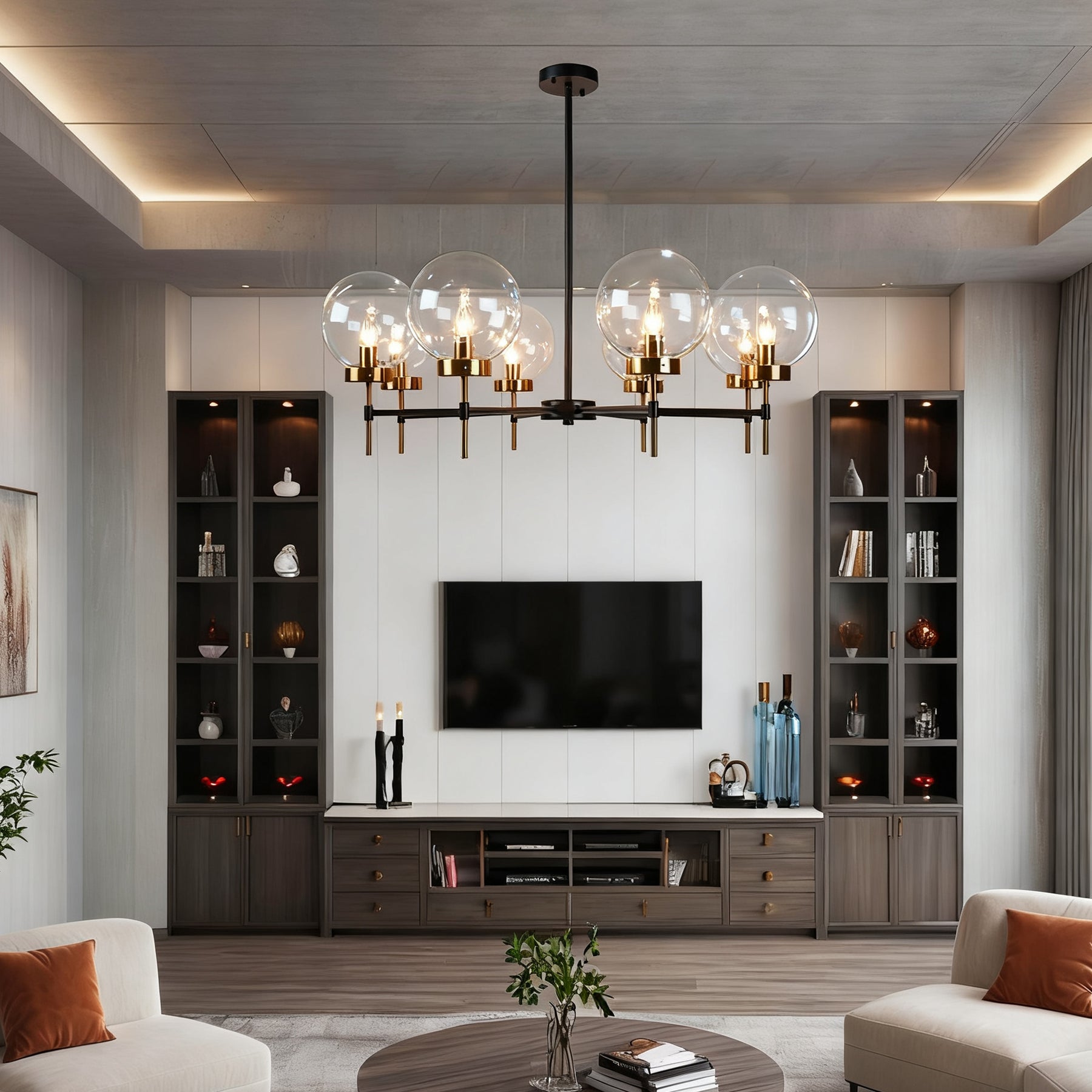 - Introducing the stunning Glass Globe Chandelier, a perfect addition to your dining room, sitting room, or living room ceiling.