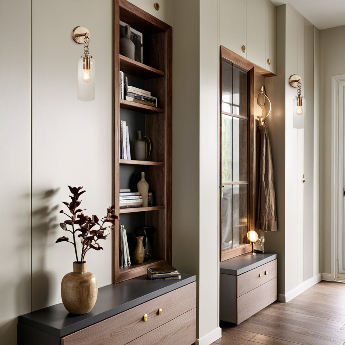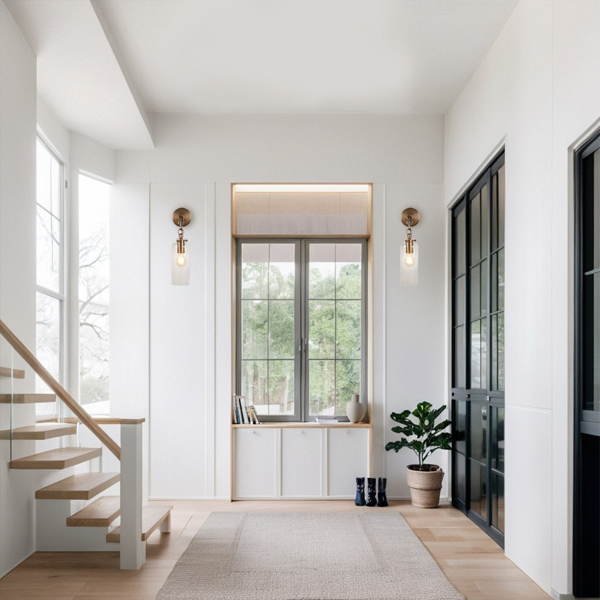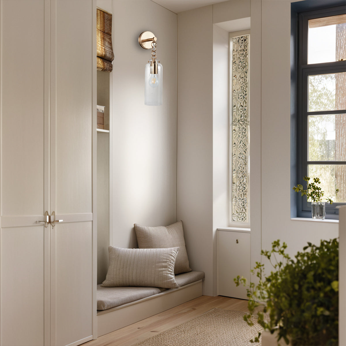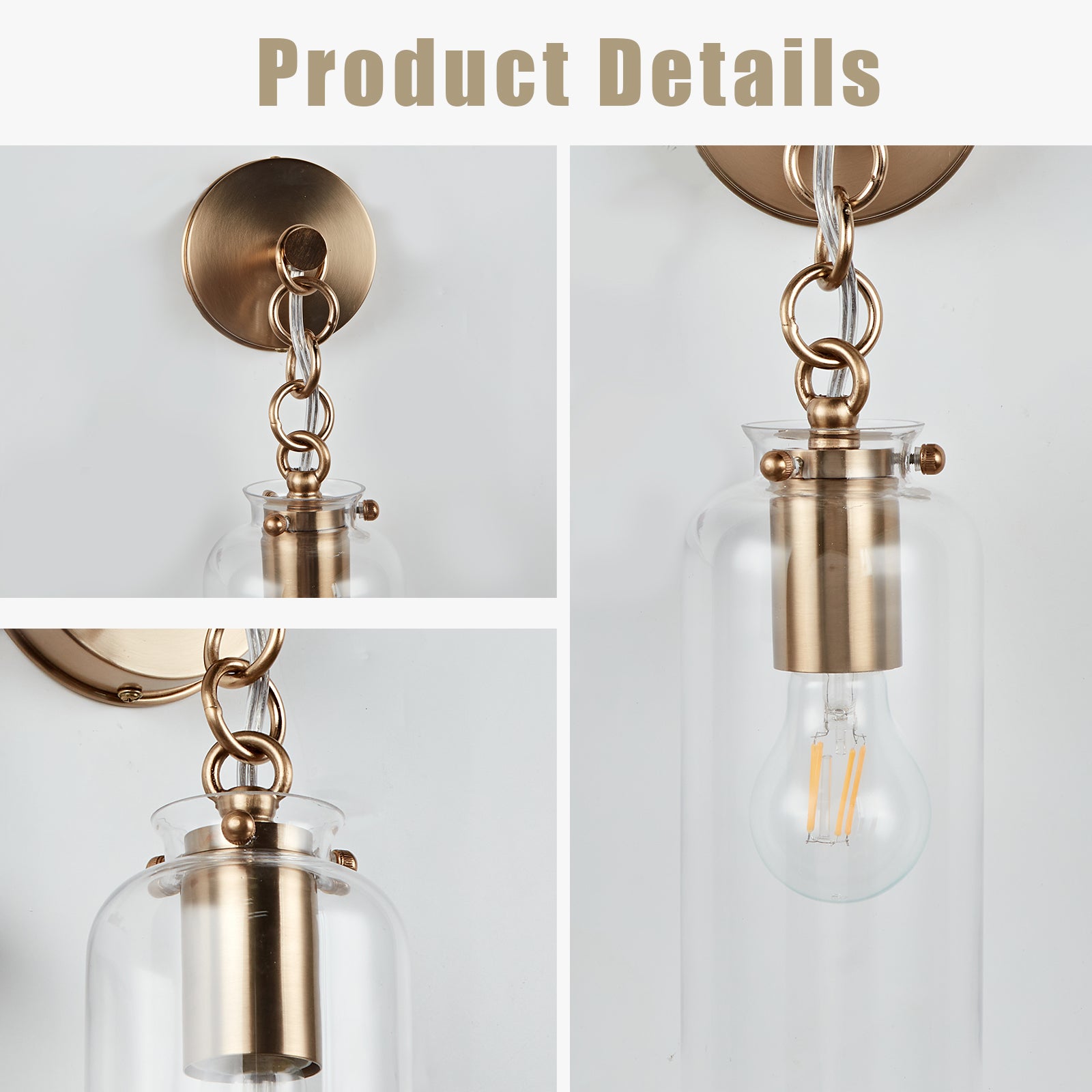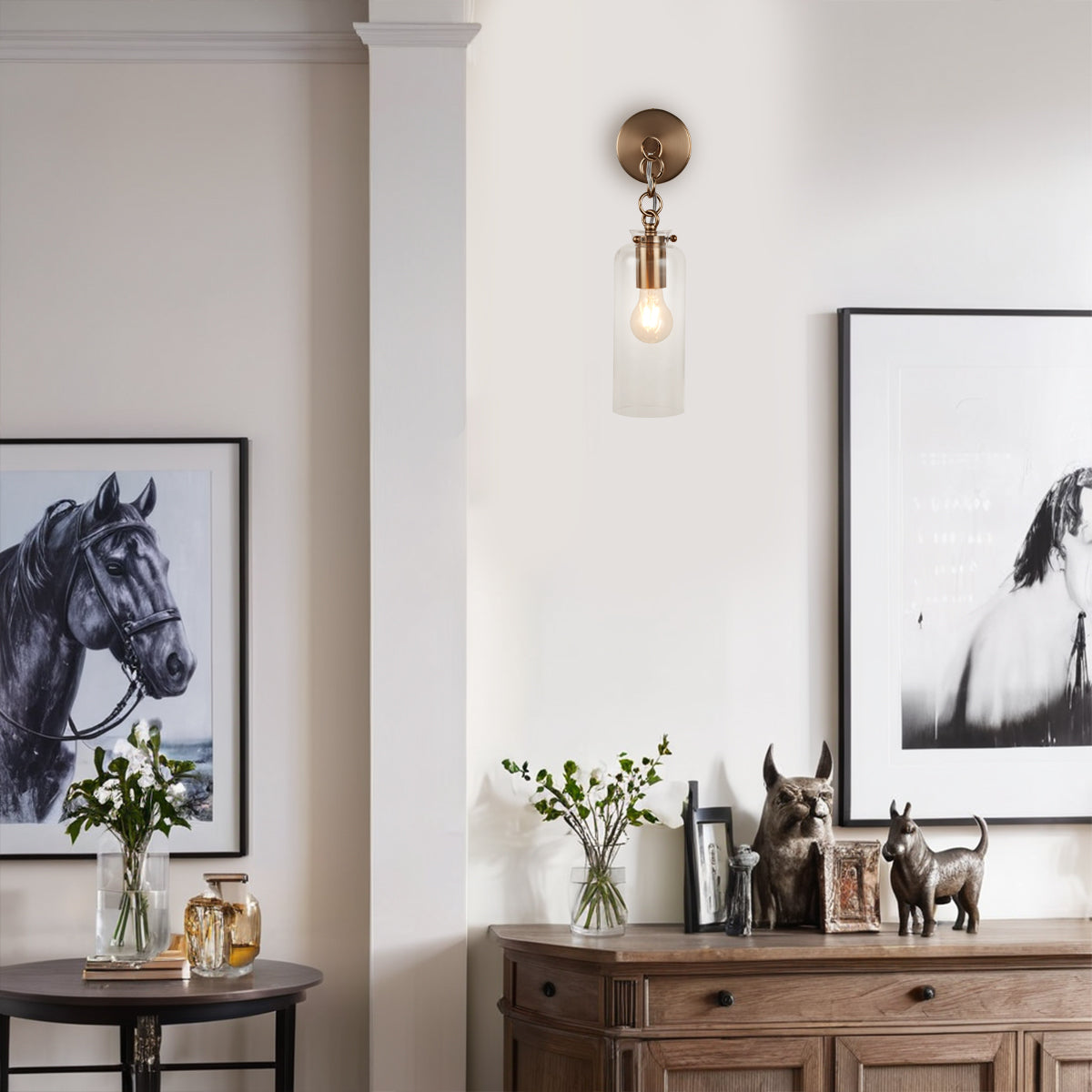 Aged Brass Sconce Wall Lamp, Retro Wall Mounted Lighting with Clear Glass Tube, Decorative Wall Light Fixture for Living Room, Bedroom, Hallway, Kitchen, Staircase
