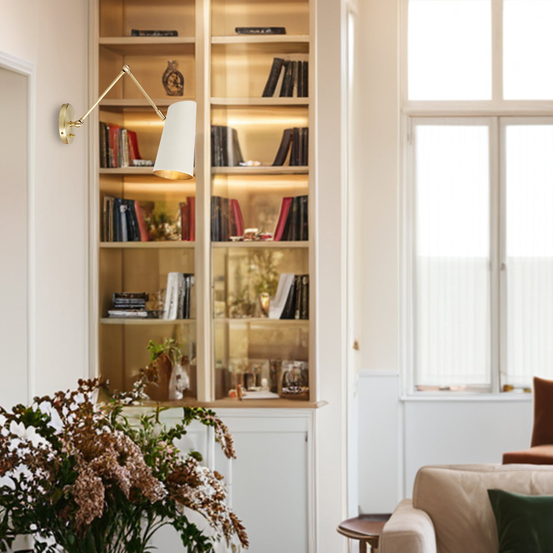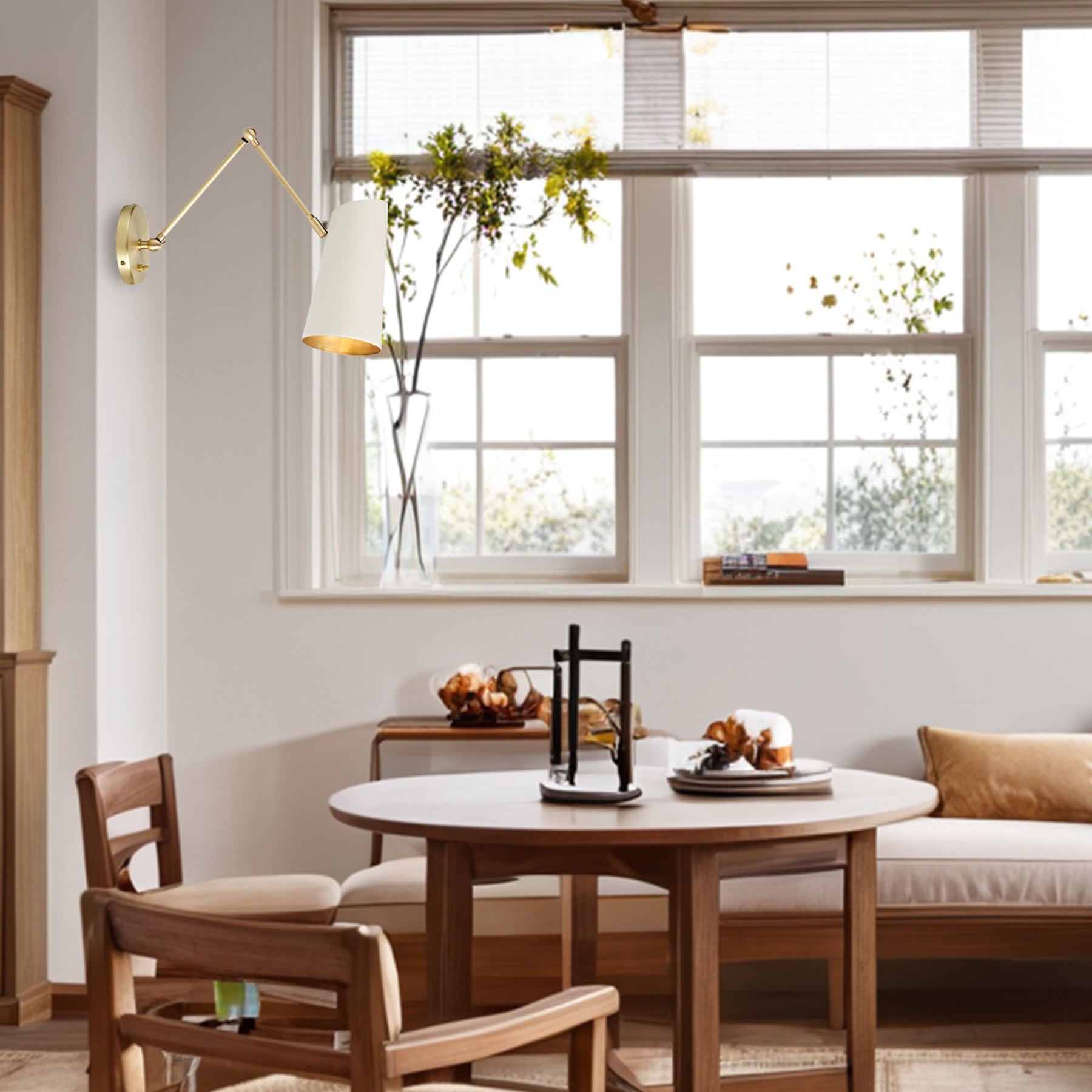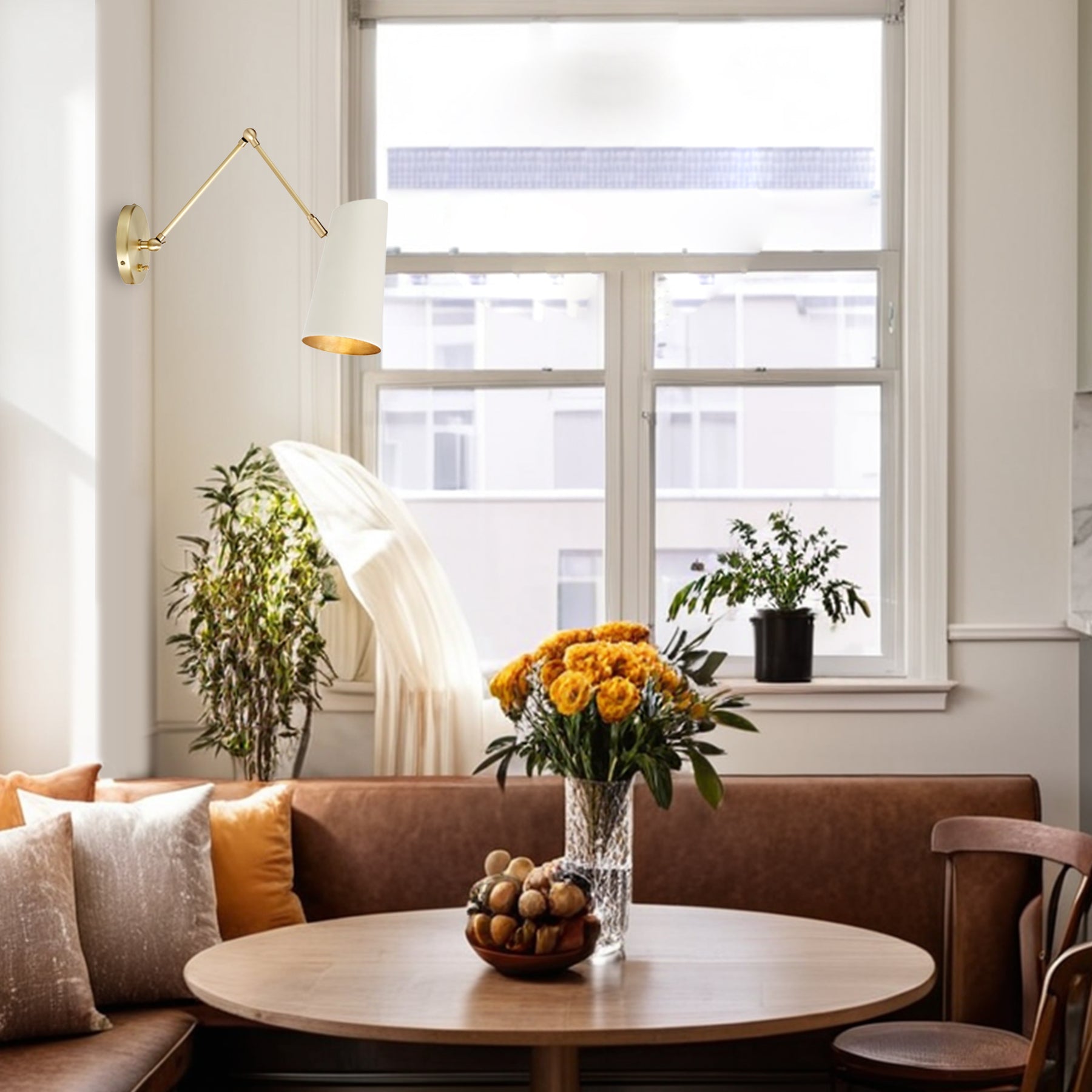 Introducing our Mid-Century Modern Metal Articulating Sconce, a sleek and stylish lighting solution for your living room or bedroom. This wall light is inspired by the iconic Mid-Century design aesthetic, featuring a tapered articulating shade and arm that allow you to adjust and direct the light to suit your needs.