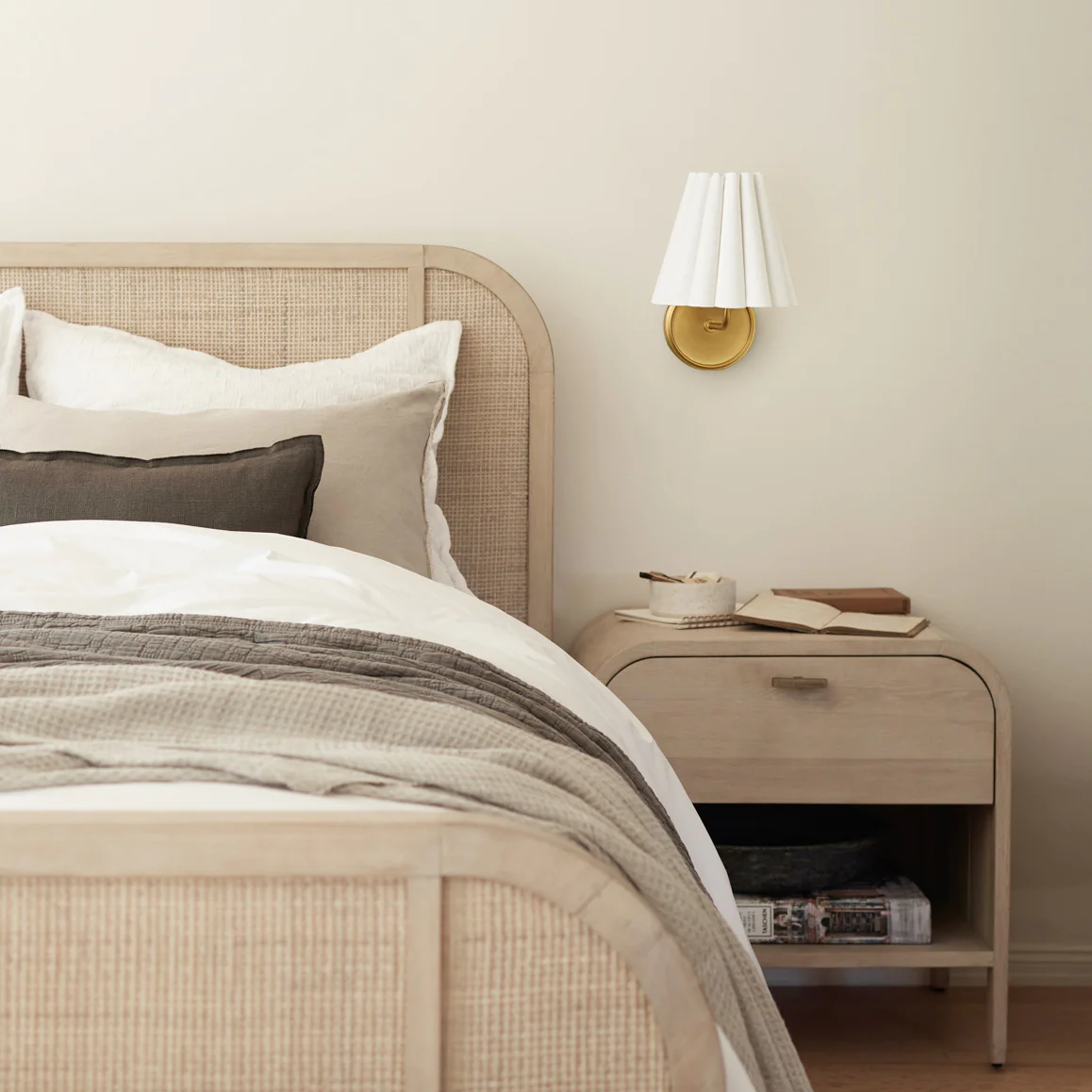 The cleanly ruffled shade of the Matthews sconce light brings a modern touch to a classic design. This sconce works perfectly in pairs or as a standout feature for transitional decor.